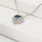 18ct white gold handmade pendant set with a natural Aquamarine and natural Diamonds on an 18ct white gold pendant necklace: