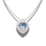 Gemstones: one heart-shaped, faceted Aquamarine weighing: 1.53ct and set with sixteen brilliant-cut Diamonds with a total weight of 0.34ct, colour: GH, clarity: VSSI