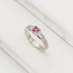 18ct white gold ring set with a natural Pink Sapphires and natural brilliant-cut Diamonds: