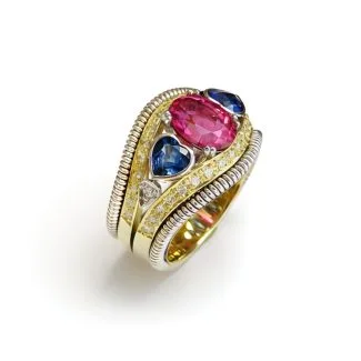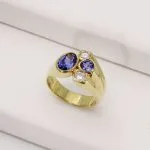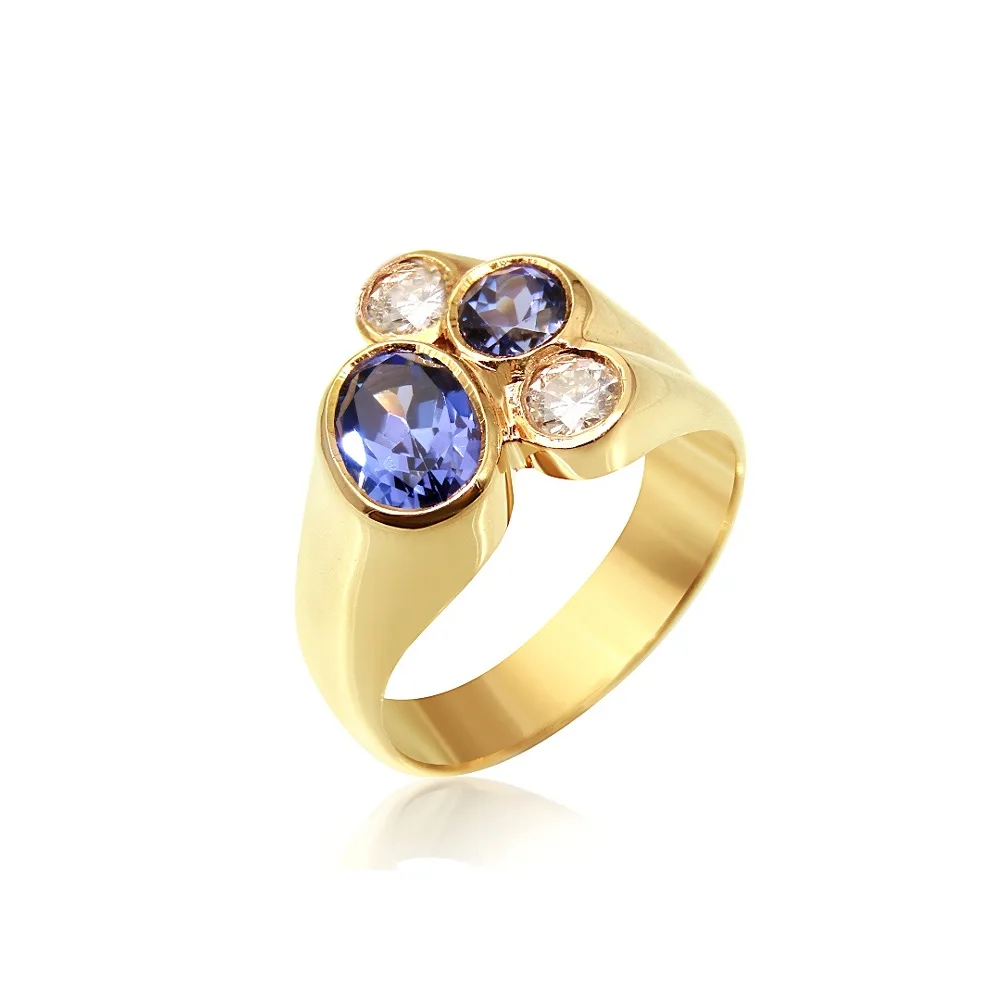 18ct Yellow Gold Cocktail Ring set with natural Tanzanite and natural Diamonds:
