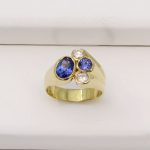 18ct Yellow Gold Cocktail Ring set with natural Tanzanite and natural Diamonds: