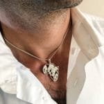 The pendant features an elephant, a lion, a leopard, a rhino and a buffalo accented with natural Diamonds with one gem set in the jewel of Africa, Cape Town.