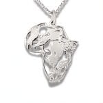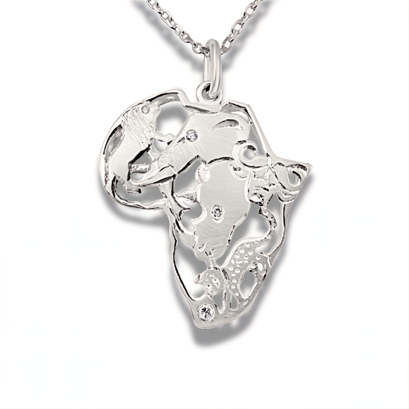 925 Sterling silver Africa pendant is set with one natural, brilliant-cut diamond on a 925 sterling silver Italian anchor-link necklace: