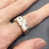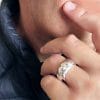 Hand-finished solid sterling silver ring with blue sapphire eyes. The two entwined dolphins symbolise eternity, a love that lasts an eternity.
