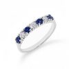 Solid 9ct white gold Blue Sapphire and Diamond half-hoop eternity ring: