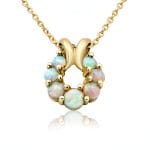 Solid 9ct Yellow gold pendant set with natural Australian Opals on a 9ct yellow gold Italian anchor-link necklace: