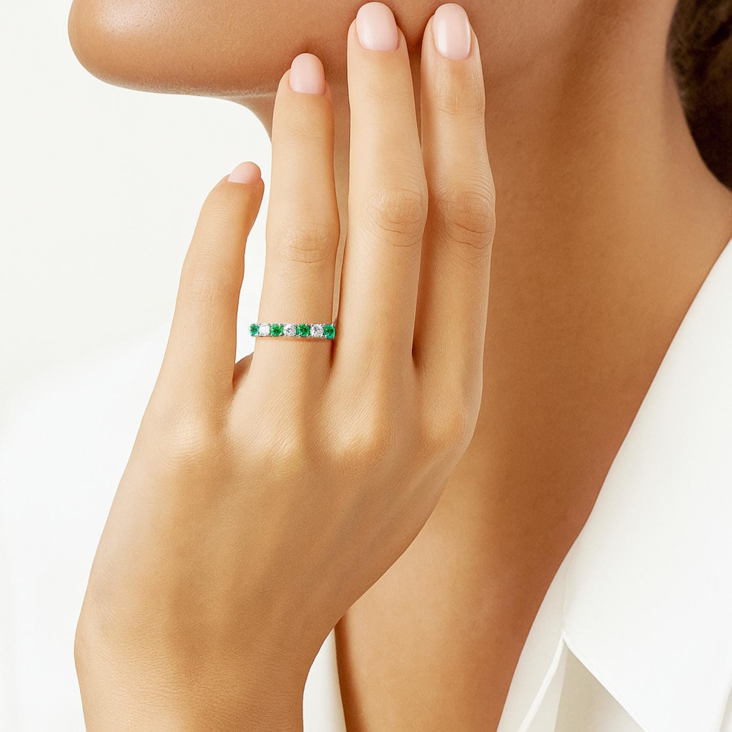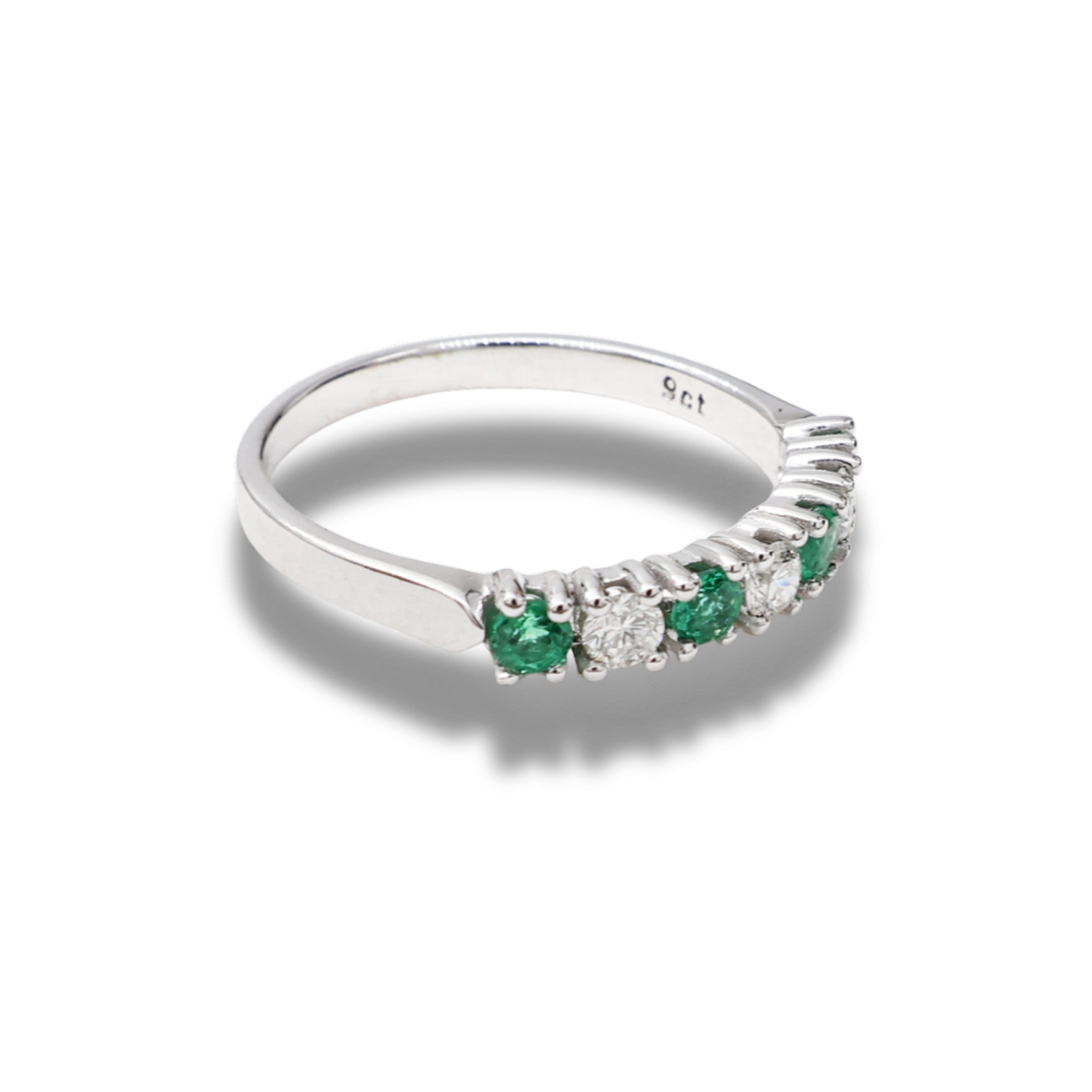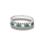Gemstones: Four faceted, natural Emeralds, total weight: 0.28ct and three natural brilliant-cut Diamonds, total weight: 0.21ct, colour: H/I, clarity: VSSI