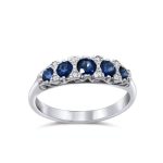 Gemstones: Five natural, round Blue Sapphires with a total weight of 0.74ct and eight brilliant-cut natural Diamonds with a total weight of 0.05ct, colour: I/J, clarity: VS/SI