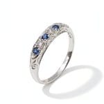 Gemstones: Three natural, round Blue Sapphires with a total weight of 0.18ct and two brilliant-cut natural Diamonds with a total weight of 0.09ct, colour: H, clarity: VSSI
