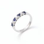 Solid 9ct White Gold Ring set with Blue Sapphires and Diamonds: