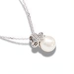 La Vie 9ct White Gold Cultured Pearl Diamond Pendant & 9ct White Gold Necklace