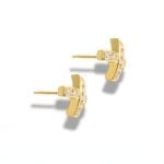 Solid 9ct yellow gold cross-design diamond stud earrings: