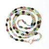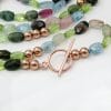 Natural Tourmaline, Aquamarine and Peridot gemstone bead necklace with 14ct rose gold filled toggle clasp and spacers: